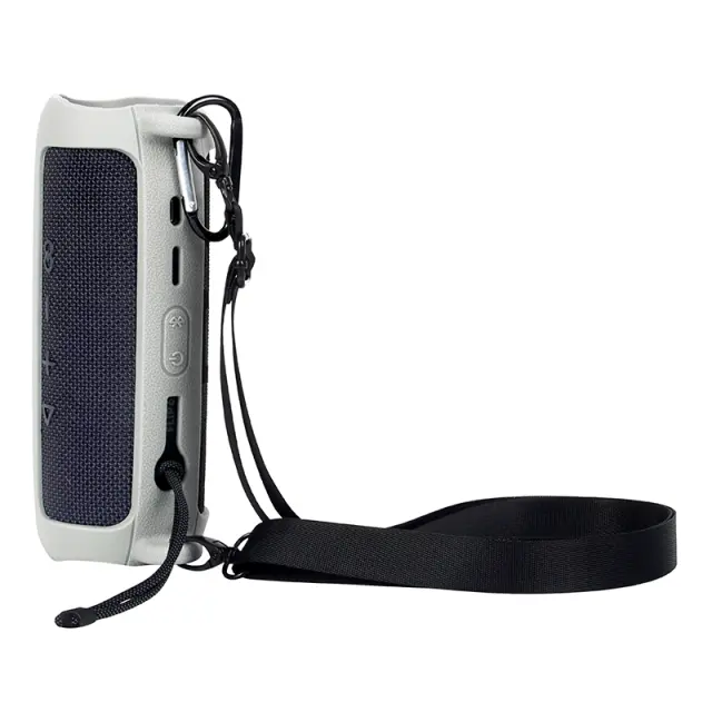 Odporen na udarce in padce: ta ovitek JBL Flip 6 je izdelan s silikonsko zunanjostjo, ki absorbira udarce, in mehko najlonsko notranjo oblogo, ki učinkovito ščiti vaš zvočnik pred nenamernimi padci, udarci in praskami.