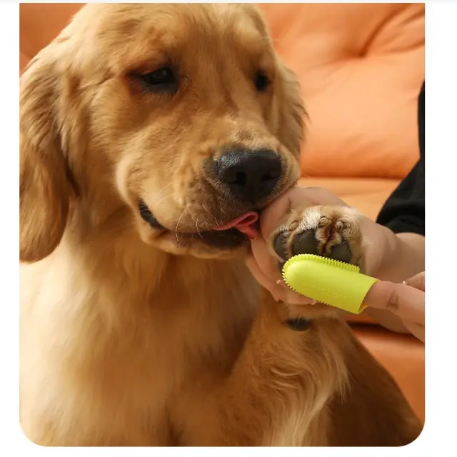 Silikonska zobna ščetka za hišne ljubljenčke z ročajem za pse in mačke Pink