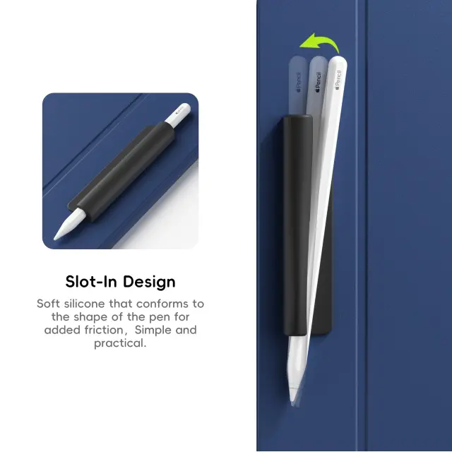 Univerzalna združljivost: Zasnovan za univerzalno združljivost z Apple Pencil (USB-C) in standardnimi nevtralnimi pisali, ta silikonski držal ponuja vsestransko funkcionalnost. Ne glede na to, ali uporabljate Apple Pencil za digitalno umetnost ali tradicionalno pisalo za zapisovanje, ta etui zagotavlja udoben in varen oprijem. Zaradi te prilagodljivosti je praktičen pripomoček za študente, umetnike in strokovnjake, ki uporabljajo različna orodja za pisanje in risanje. Univerzalna zasnova zagotavlja tesno prileganje in zanesljivo delovanje z različnimi vrstami pisal in svinčnikov.