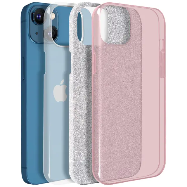 Ovitek z bleščicami, posebej zasnovan za vaš iPhone 13 Mini. Večslojni dizajn 3 v 1 za prilagoditev ohišja vašemu videzu. Izdelan iz 3 delov, s tanko polikarbonatno plastjo, bleščečim listom in mehkim silikonskim etuijem. Bleščeč dizajn daje vašemu pametnemu telefonu sijoč videz.