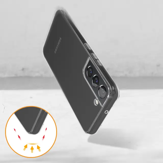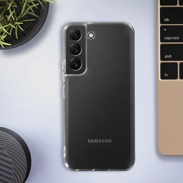 Prozorna zaščitna torbica, posebej oblikovana za vaš Samsung Galaxy S22 Plus. Mehka silikonska torbica ščiti vaš pametni telefon pred vsemi nevarnostmi. Odlično ohranjen dizajn vašega telefona zahvaljujoč prosojnosti etuija. Kamera in dvignjeni robovi za maksimalno zaščito.