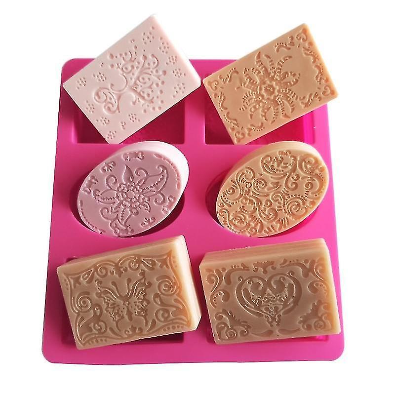 Silikonski kalup za milo 6 kalupov ovalnega pravokotnika z reliefnim vzorcem rož