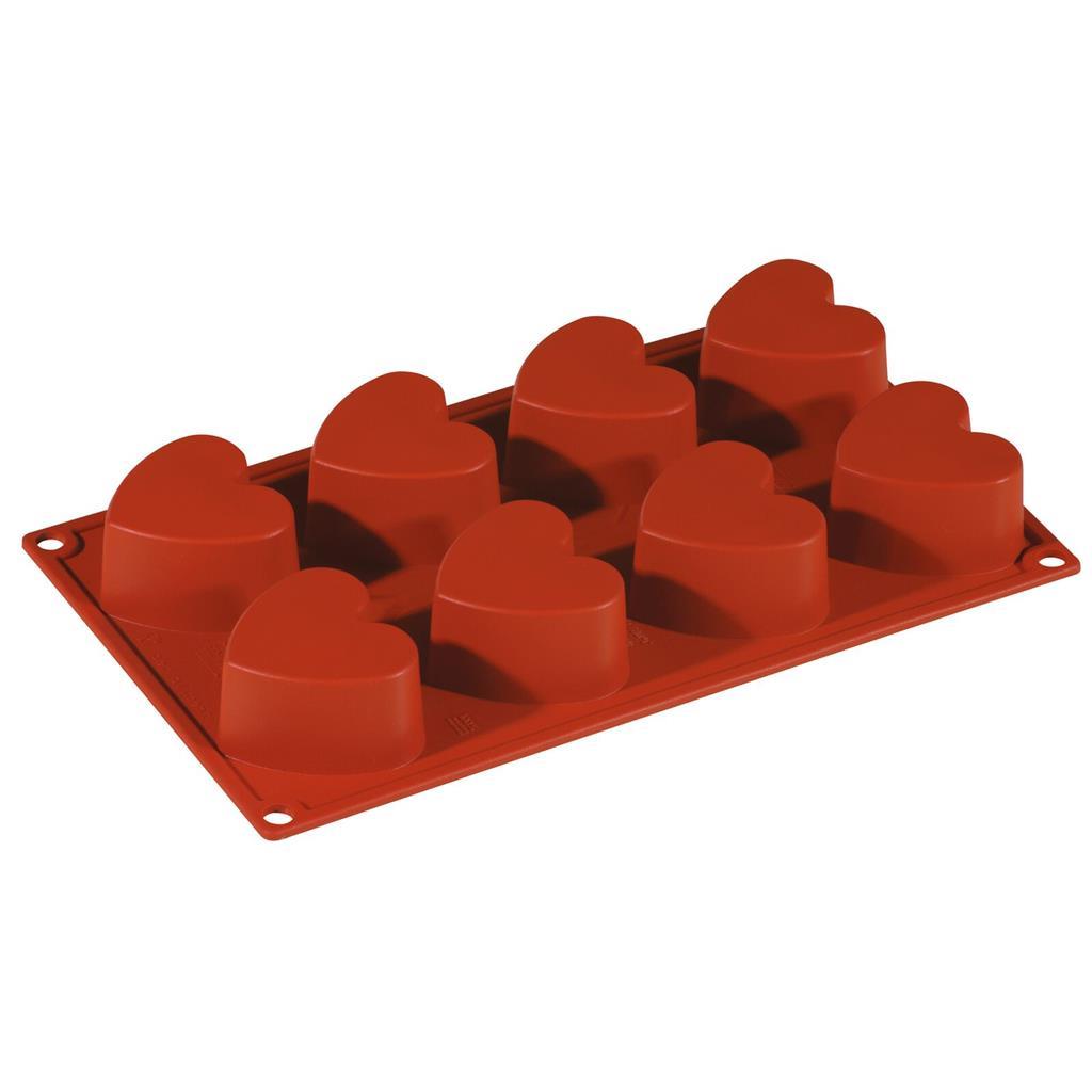 Silikonski model in pekač srce, dimenzije 30x18cm, z 8 vtisi srčaste oblike dimenzije 65x60mm, ter volumna 97ml.
