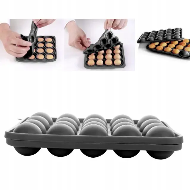 To je kuhinjski pripomoček, ki pomaga enakomerno oblikovati piškote v enake kroglice. Kalup ima 20 lukenj in 20 paličic.