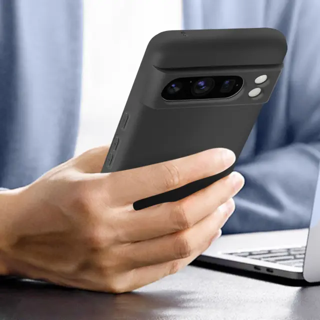 Crn silikonski ovitek za Google Pixel 8 Pro. Zašcita Google Pixel 8 Pro odporna na udarce in praske. Etui z zapestnim trakom za enostavno prenašanje. Hitra namestitev za zagotovitev varnosti pametnega telefona. Tanek in lahek Google Pixel 8 Pro silikon.