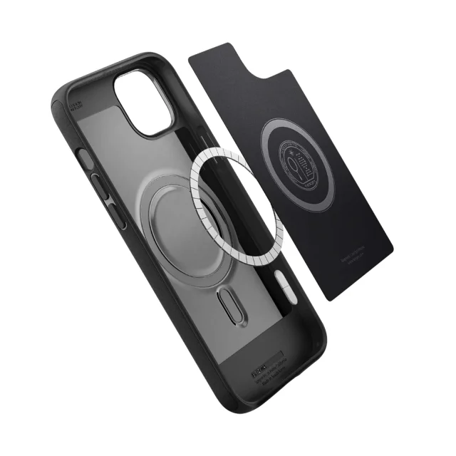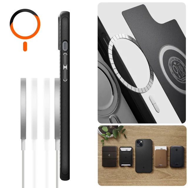 Silikonski ovitek Spigen za iPhone 14 s crtastim ucinkom, združljiv z MagSafe, Mag Armor MagFit - mat crna