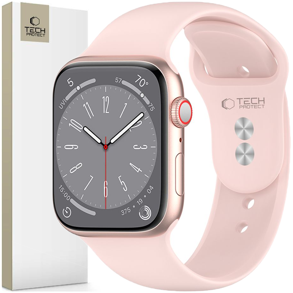 Pašček TECH-PROTECT je združljiv z modeli Apple Watch 4, 5, 6, 7, 8, 9 in SE v velikostih 38/40/41 mm, kar zagotavlja popolno prileganje..