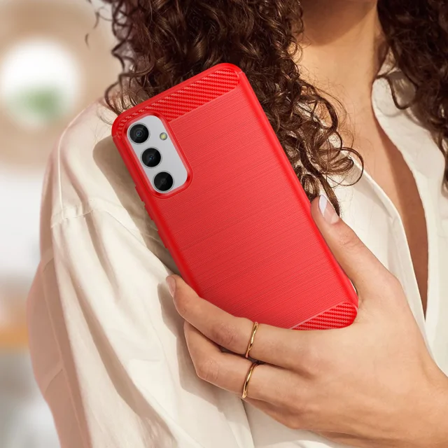 Silikonski ovitek za Galaxy A34 5G, dizajn iz brušene kovine z ucinkom ogljika - rdec