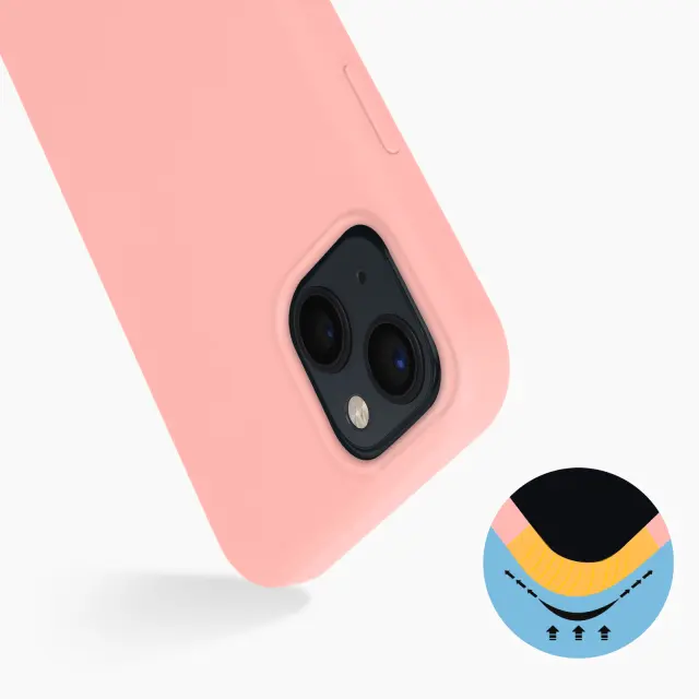 Zaščitna torbica posebej zasnovana za vaš iPhone 13 Mini. Poltrd, učinkovito ščiti vaš telefon pred padci in praskami v vsakdanjem življenju. Zunanji etui iz mehkega silikona z mehko notranjo površino. Zagotavlja odličen oprijem in prijeten občutek.