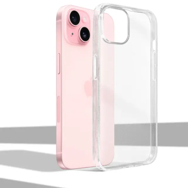 Ovitek serije Pureflex iPhone 15 Plus prozoren iz mehkega silikona, odporen na praske in udarce. Ima prevleko proti porumenelosti in pušca vidno prvotno obliko mobilnega telefona. Izjemno tanek dizajn in dostopne funkcije