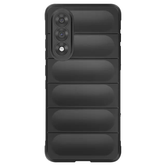 Ta lupina ima ojačane vogale za učinkovito blaženje udarcev.. Nedrseča silikonska lupina s teksturiranim reliefnim dizajnom. Mehka notranjost na dotik za zaščito hrbtne strani pametnega telefona. Dvignjeni robovi za zaščito zaslona in kamere.