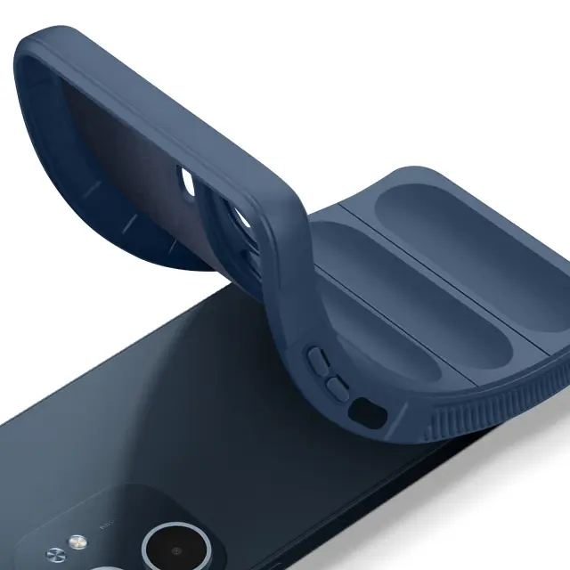 To ohišje ima zasnovo proti udarcem za boljšo zaščito. Robustna in elegantna zasnova za vsakodnevno uporabo. Teksturirana, dvignjena površina za boljši oprijem. Notranjost z mehkim dotikom ščiti zadnjo stran telefona.