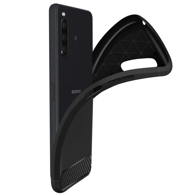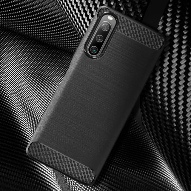 Silikonski ovitek za Sony Xperia 10 IV, crna z brušenim kovinskim dizajnom Carbon Effect