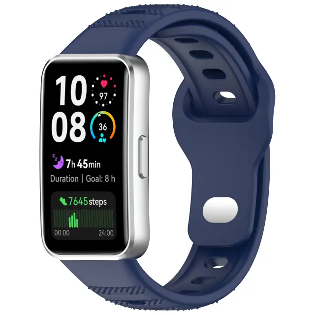 Udobno in elegantno: Izdelan iz vrhunskega silikona, ta pašček nudi gladek in udoben občutek na vaši koži, tudi med intenzivnimi vadbami ali dolgotrajno nošnjo. Edinstvena pikčasta tekstura doda pridih prefinjenosti in vizualnega zanimanja vaši napravi Huawei Band, s čimer izboljša njeno splošno estetiko. Je popolna kombinacija udobja in sloga za vaše vsakdanje življenje.