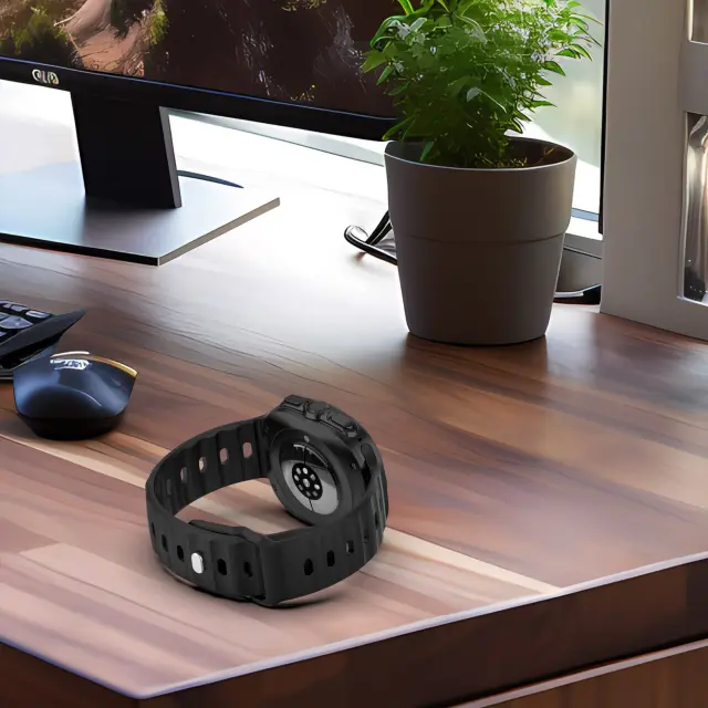 Eleganten in vsestranski dizajn: ta eleganten črn pas za uro dopolnjuje sodobno estetiko vaše ure Samsung Watch Ultra 47 mm. Njegov vsestranski dizajn zlahka prehaja iz priložnostnega v formalno okolje, zaradi česar je popoln dodatek za vsako priložnost.