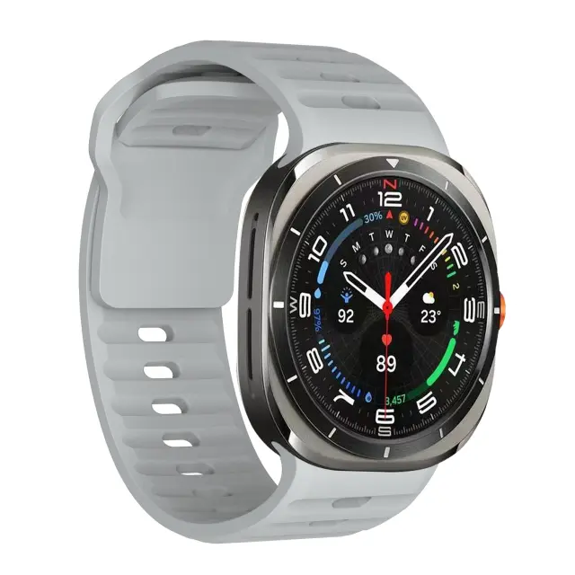 Udoben in eleganten: Ta pašček za uro je izdelan iz visokokakovostnega silikona in ponuja izjemno udobje za celodnevno nošenje. Njegova elegantna in moderna oblika doda vaši uri Galaxy Watch 7 Ultra kanček stila.