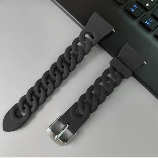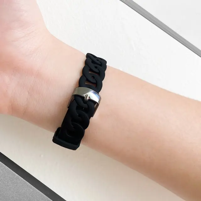 Udobno in elegantno: Ta pašček za uro, izdelan iz gladkega in prožnega silikona, zagotavlja celodnevno udobje za vaše zapestje. Minimalističen dizajn in klasična barva se dopolnjujeta s katerim koli slogom, zaradi česar je popoln tako za priložnostne kot tudi za formalne priložnosti.