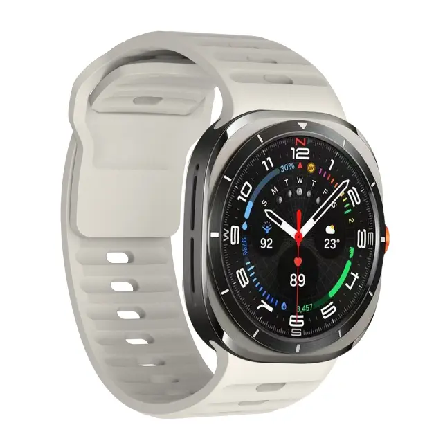 Udoben in eleganten: Ta pašček za uro je izdelan iz visokokakovostnega silikona in ponuja izjemno udobje za celodnevno nošenje. Njegova elegantna in moderna oblika doda vaši uri Galaxy Watch 7 Ultra kanček stila.