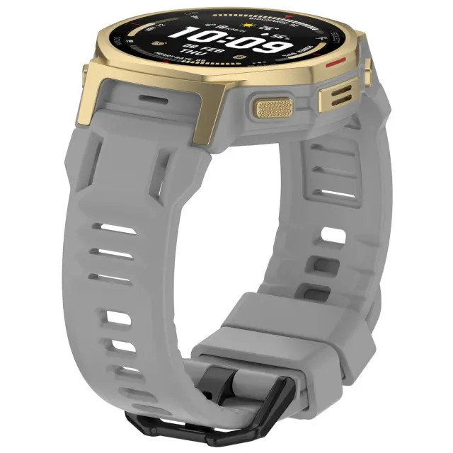 Udoben silikonski material: Izdelan iz vrhunskega silikona, ta pašček za uro nudi gladek in udoben občutek na vaši koži, zaradi česar je idealen za celodnevno nošenje. Fleksibilen material zagotavlja tesno prileganje brez draženja, tudi med intenzivnimi aktivnostmi. Silikonski material je odporen tudi na znoj in vodo, zaradi česar je popoln za vadbe, plavanje in druge pustolovščine na prostem. Uživajte v popolni mešanici udobja in funkcionalnosti s tem visokokakovostnim silikonskim paščkom, združljivim z Amazfit T-Rex 3 Pro.