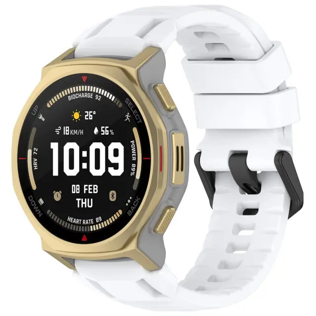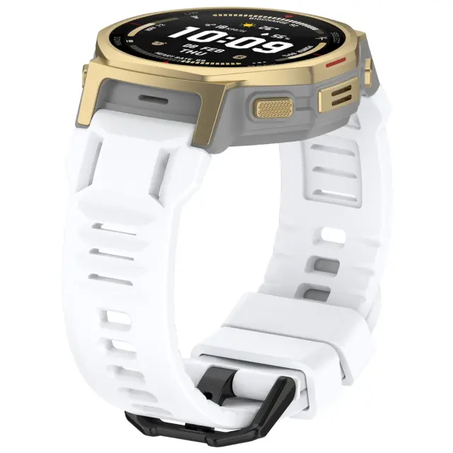 Udoben silikonski material: Izdelan iz vrhunskega silikona, ta pašček za uro nudi gladek in udoben občutek na vaši koži, zaradi česar je idealen za celodnevno nošenje. Fleksibilen material zagotavlja tesno prileganje brez draženja, tudi med intenzivnimi aktivnostmi. Silikonski material je odporen tudi na znoj in vodo, zaradi česar je popoln za vadbe, plavanje in druge pustolovščine na prostem. Uživajte v popolni mešanici udobja in funkcionalnosti s tem visokokakovostnim silikonskim paščkom, združljivim z Amazfit T-Rex 3 Pro.