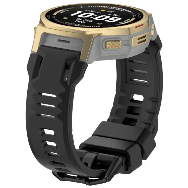 Udoben silikonski material: Izdelan iz vrhunskega silikona, ta pašček za uro nudi gladek in udoben občutek na vaši koži, zaradi česar je idealen za celodnevno nošenje. Fleksibilen material zagotavlja tesno prileganje brez draženja, tudi med intenzivnimi aktivnostmi. Silikonski material je odporen tudi na znoj in vodo, zaradi česar je popoln za vadbe, plavanje in druge pustolovščine na prostem. Uživajte v popolni mešanici udobja in funkcionalnosti s tem visokokakovostnim silikonskim paščkom, združljivim z Amazfit T-Rex 3 Pro.