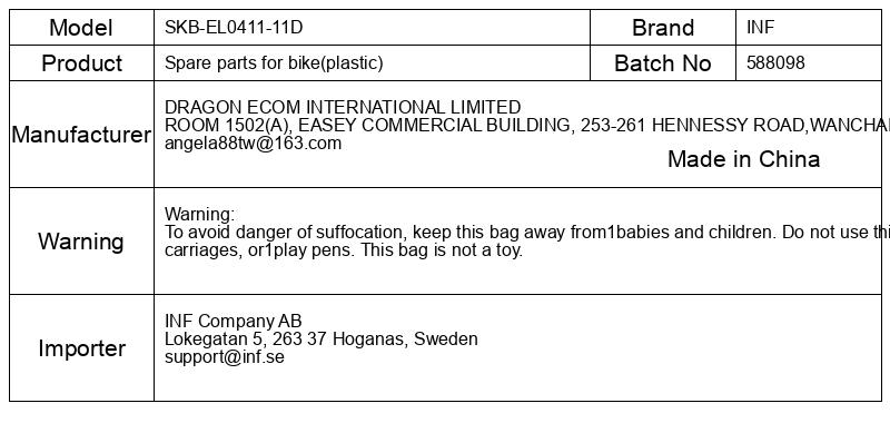 Opozorilo: Da bi se izognili nevarnosti zadušitve, vrečko hranite izven dosega dojenčkov in otrok. Vrečke ne uporabljajte v otroških posteljicah, vozičkih ali igralih. Ta vreča ni igrača.