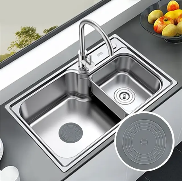 Zamašek za umivalnik je izdelan iz mehkega silikona in se prilagaja obliki umivalnika. Tesno se zapre in ne plava navzgor, tako da se lahko namakate, perete in perete, ne da bi polili preveč vode.