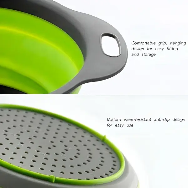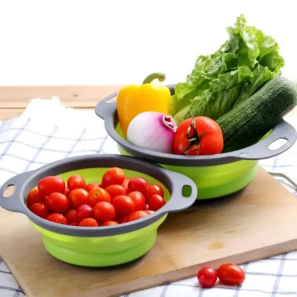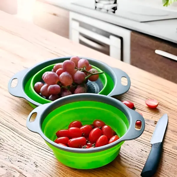 Silikonska posoda, oblikovana v obliki cedila, predstavlja idealno možnost za enostavno izpiranje sadja, zelenjave in različnih drugih živil!