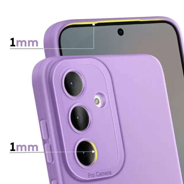 Mehka silikonska prevleka, ki absorbira udarce in je idealna za zaščito telefona Galaxy S25 FE pred praskami in manjšimi vsakodnevnimi udarci.. Ojačan blok za fotoaparat z dvignjenim robom, ki preprečuje neposreden stik, ščiti objektive in zagotavlja trajnost fotografij.. Mehka notranjost iz mikrovlaken preprečuje nastanek mikro prask na hrbtni strani, tudi po številnih vstavitvah in odstranitvah. Elegantna, diskretna zasnova z natančnimi izrezi za enostaven dostop do vseh vrat in gumbov.