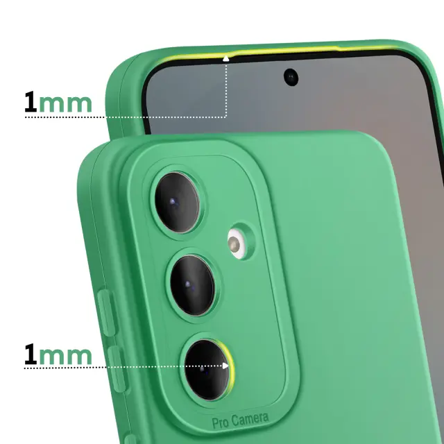 Mehka silikonska prevleka, ki absorbira udarce in je idealna za zaščito telefona Galaxy S25 FE pred praskami in manjšimi vsakodnevnimi udarci.. Ojačan blok za fotoaparat z dvignjenim robom, ki preprečuje neposreden stik, ščiti objektive in zagotavlja trajnost fotografij.. Mehka notranjost iz mikrovlaken preprečuje nastanek mikro prask na hrbtni strani, tudi po številnih vstavitvah in odstranitvah. Elegantna, diskretna zasnova z natančnimi izrezi za enostaven dostop do vseh vrat in gumbov.