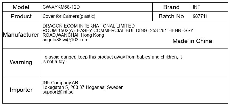 Da bi se izognili nevarnosti, izdelek hranite izven dosega dojenčkov in otrok, saj ni igrača.