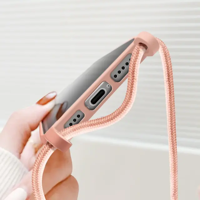 Silikonsko ohišje z vrvico Soft touch Rose Champagne za iPhone 16 Pro Max, Šampanjec roza