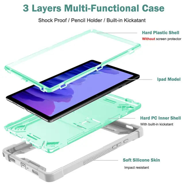 Silikonsko ohišje za tablični računalnik Samsung Galaxy Tab A7 10.4 (2020)/(2022) + PC zaščitni oklep s stojalom