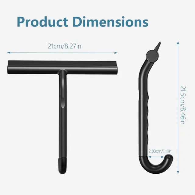Vsestransko čiščenje: To strgalo je zasnovano kot univerzalno orodje za tuš kabine, stekla, ogledala, ploščice in avtomobilska okna. 145° ukrivljen lok in razširjen rigidni rob zagotavljata enakomerno porazdelitev pritiska, kar omogoča hitro odstranjevanje vodnih madežev, meglice, milnih ostankov in trdovratnih sledi. Predstavljajte si, da v majhnem kopalniškem prostoru ali pri čiščenju avta z enim gibom dosežete sijočo, brezmadežno površino brez prask.