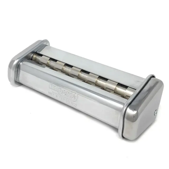 S tem nastavkom za izdelavo testenin IMPERIA SIMPLEX T5 LASAGNETTE 12 MM boste enostavno pripravili sveže široke rezance, ki so podobni tradicionalni lasagni, vendar so tanjši in ožji. Ime "lasagnette" izhaja iz italijanske besede "lasagne", kar pomeni "rezanci". Lasagnette se pogosto uporabljajo pri pripravi lazanj ali v drugih testeninskih jedeh z različnimi omakami, kot je na primer bolonjska omaka ali pesto. Debelina reza svežih testenin je 12 mm.