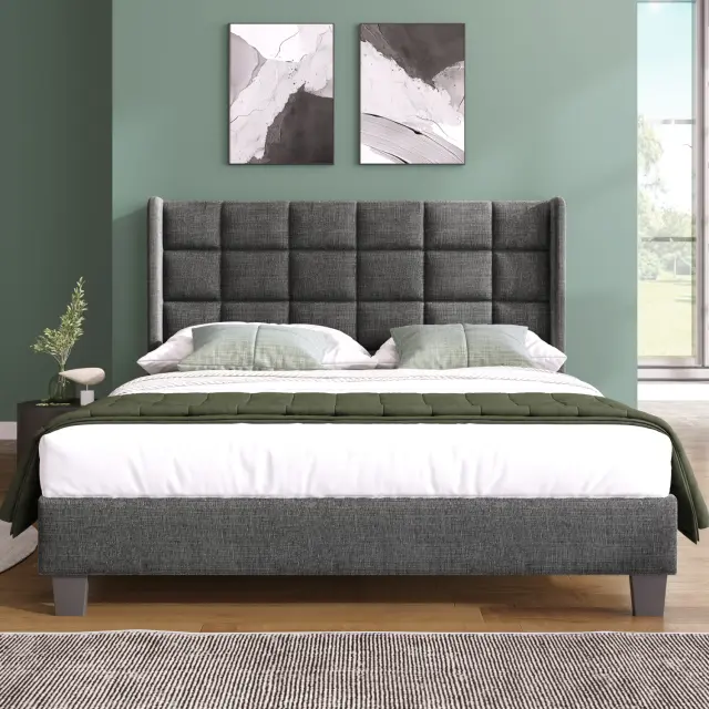 Siv laneni oblazinjen okvir za zakonsko posteljo (140x200 cm) - srednje trdo letveno dno (brez vzmetnice)