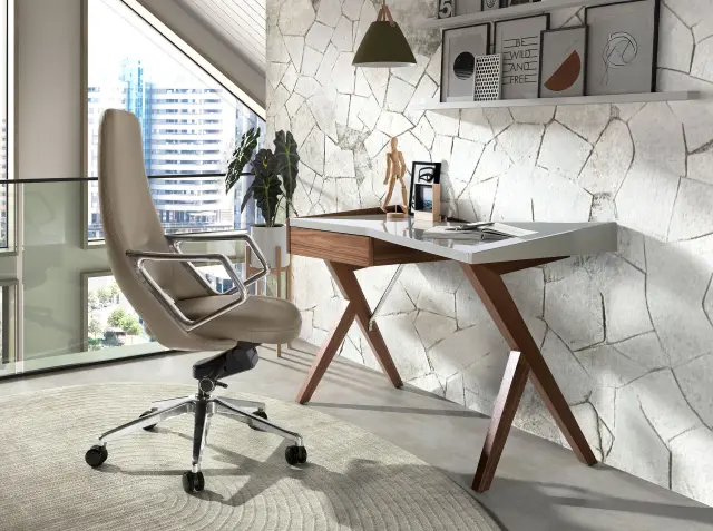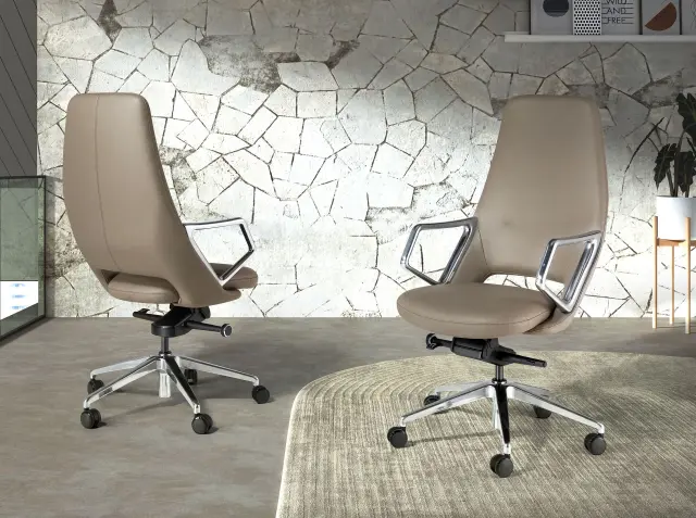 Siv usnjen vrtljivi pisarniški stol