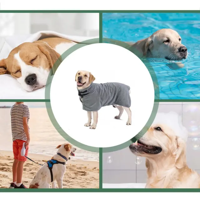 Siva kopalna halja za hišne ljubljenčke: hitro sušenje, nastavljiv ovratnik S