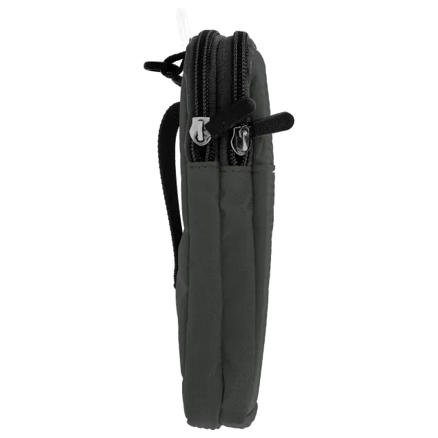 Siva naramna torba z več žepi, integriran naramni trak/zaponka za pas