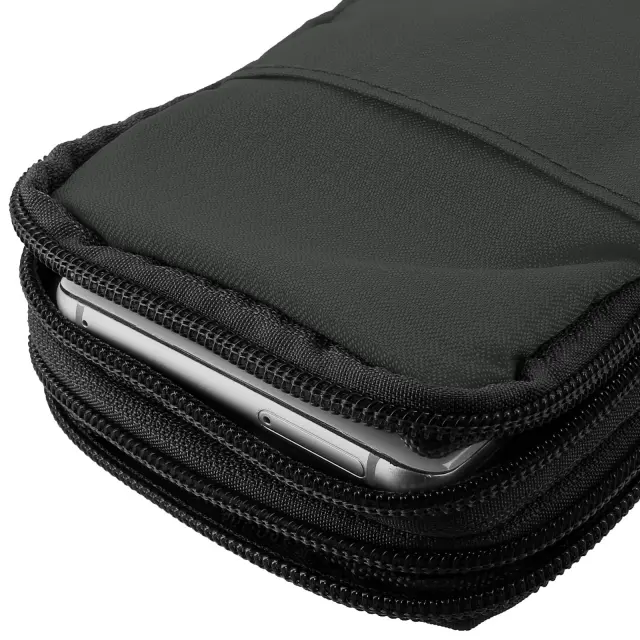 Vodotesna univerzalna torba za čez ramo z več žepi - siva. Izdelana iz vodoodpornih najlonskih vlaken, idealna za deževne razmere. Dva velika žepa z zadrgo in zunanji prostor za shranjevanje. Zanka za pas, da imate pametni telefon vedno pri sebi.