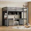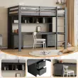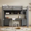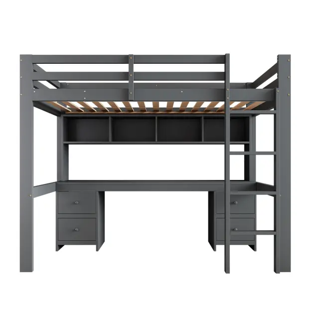 Siva podstrešna postelja 90x200 cm z mizo in shrambo, visoko ograjo, stabilno lestvijo