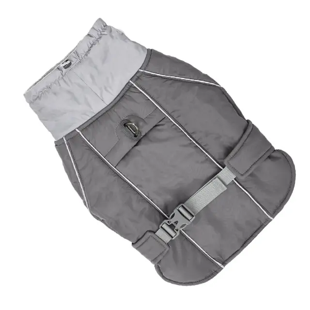 Siva vodoodporna podložena pasja jakna - topla in zaščitna zimska jakna za majhne do velike pse L