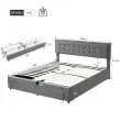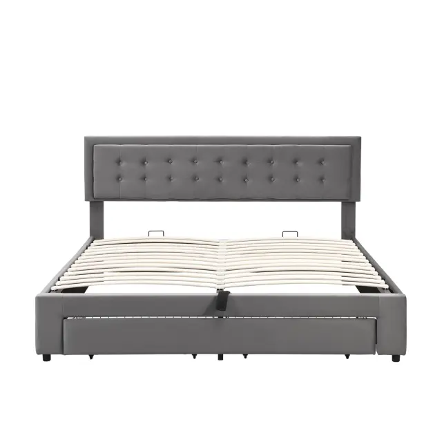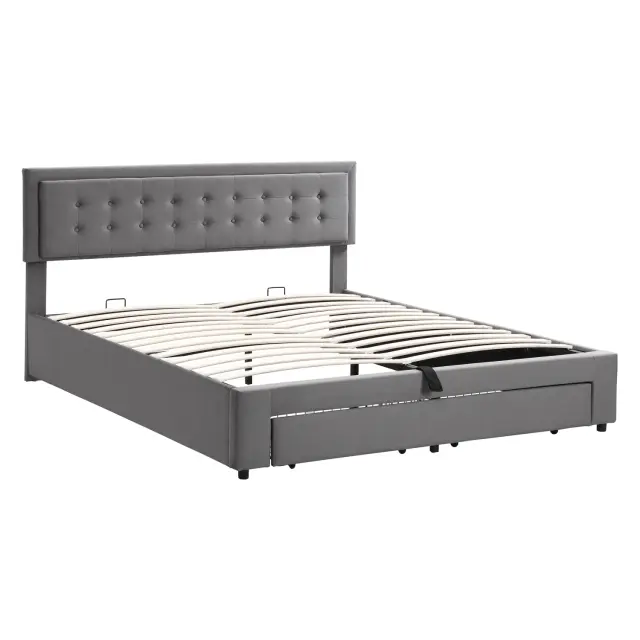 Siva žametna oblazinjena zakonska postelja s shrambo, letveni okvir, 180x200 cm