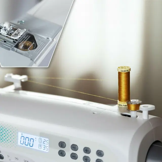 BelleCouture 21500 je elektronski šivalni stroj, primeren za izkušene šivilje. Ponuja 215 vgrajenih šivov, vključno z vzorci, številkami in simboli, kar omogoča vsestransko uporabo. Sodobna bela zasnova se lepo prilega vašemu ustvarjalnemu prostoru. Opremljen je z zmogljivim in tihim digitalnim motorjem, samodejnim navijanjem in samodejnim nitkanjem. LED osvetlitev osvetljuje vaše projekte. Nepogrešljiv pripomoček za vse vaše šivalne potrebe.