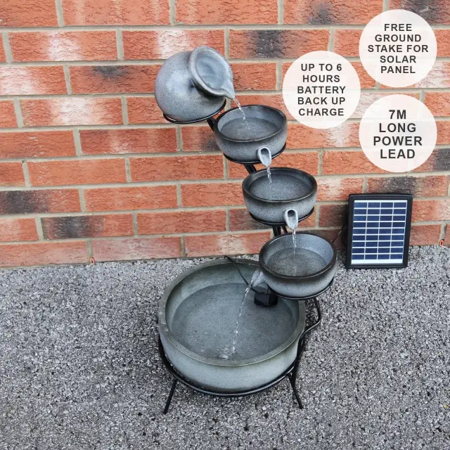 Dodajte svojemu vrtu privlačno izjavo s 4-stopenjskimi vodnimi posodami. Čudovito privlačen, vaš vrt bo izstopal od ostalih s tem odličnim dodatkom. Ta vodna funkcija je izdelana iz trpežne smole in je odporna na vremenske vplive, tudi v deževnih dneh.
