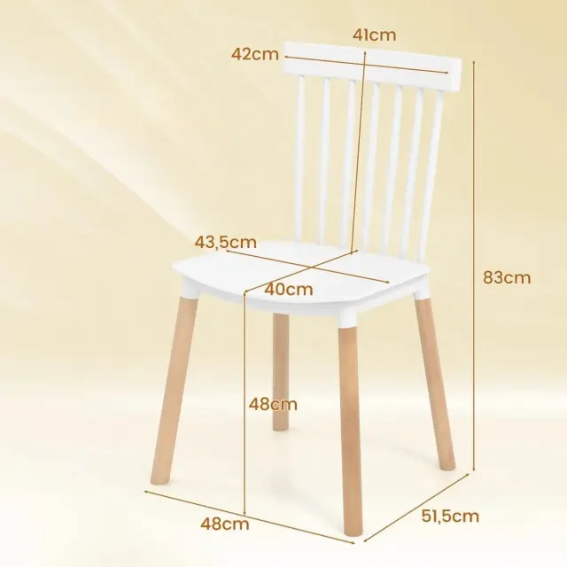 Vsestranska uporaba: Z naravno teksturo in preprostimi barvami se stoli Windsor brez težav prilegajo dekorju vsakega prostora. Stole lahko uporabljate v kuhinji, jedilnici, dnevni sobi ali kavarni.