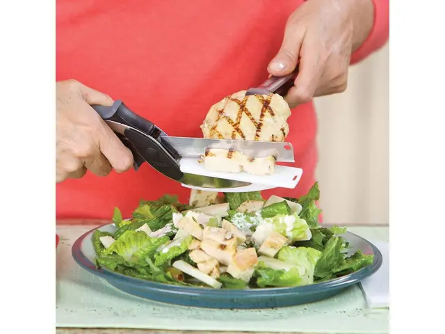 Ima vzmetni mehanizem, ki olajša rezanje in sekljanje
