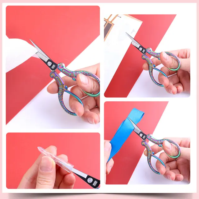 Ostra rezila: te škarje za vezenje so izdelane iz visokokakovostnega nerjavečega jekla in imajo izjemno ostra rezila, ki z lahkoto drsijo skozi niti, kar zagotavlja čiste in natančne reze vsakič. Poslovite se od obrabljenih robov in pozdravite profesionalne rezultate.