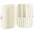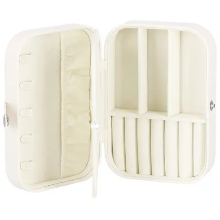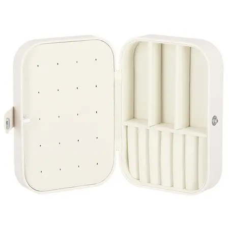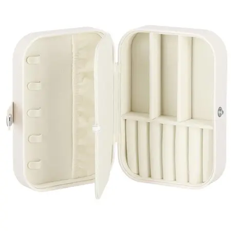 Škatla za nakit vam bo omogočila udobno in varno shranjevanje vaših prstanov, verižic, zapestnic, brošk in drugih dodatkov. V našem primeru bo vsak dodatek imel svoje mesto. Zahvaljujoč temu ne boste nikoli izgubili drugega ujemajočega se uhana in ogrlice se ne bodo zapletle. Ponujena žametna torbica znamke Springos® vsebuje številne predalčke, v katere lahko organizirate svoje dragocenosti. Na notranjo stran pokrova smo namestili tudi žep in kljukice. Krem ohišje se popolnoma ujema s krem notranjostjo. Organizator je majhen, zato je idealen za potovanja. Doma je priporočljivo, da ga postavite na toaletno mizico ali komodo.