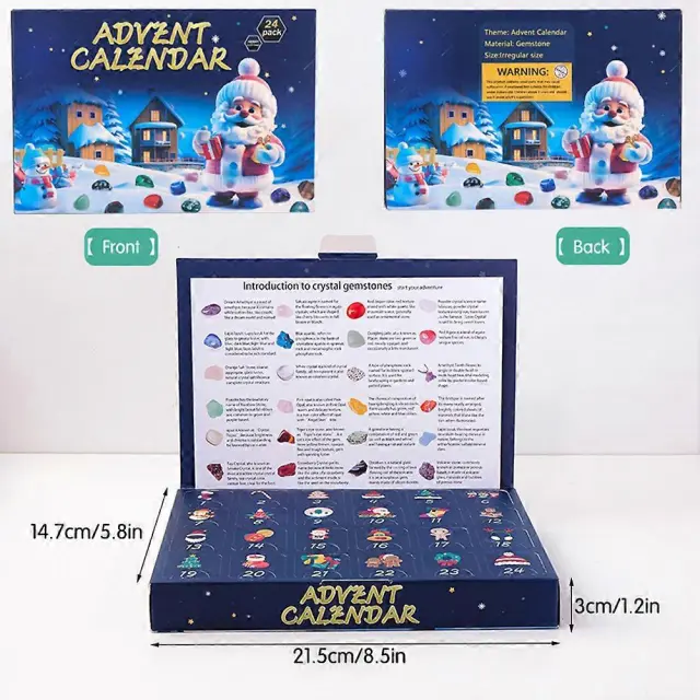 Škatla za presenečenja koledarja 24 dni, 24 kosov pisanih zbirateljskih kristalov, škatla za darila Rock za otroke, odrasle